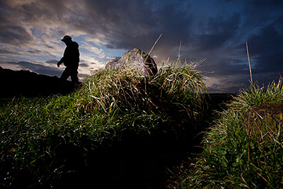 Near where I live there is a beauty spot called Hengistbury Head so I set off and just shot the pictures that I saw. As dusk started to approach I became fascinated by a whole row of boulders that I must have walked past five hundred times in my life and never really noticed. I decided to light a couple of them against the beautiful winter sunset and keep trying until I got a shot I liked. The article called for nothing to take more than a few minutes because it would be cold and/or wet and so I grabbed this picture in five minutes before heading off to the next idea.