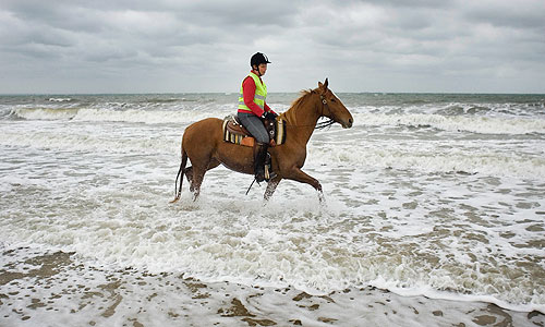 Being a teacher, she is at school most days. During the holidays she gets away to the coast and rides whenever she can and if the tide is right she can ride on the beach. It was an October morning and we met at dawn in the car park near the stables. My brief was to get a double page spread for a magazine which showed her enjoying herself.