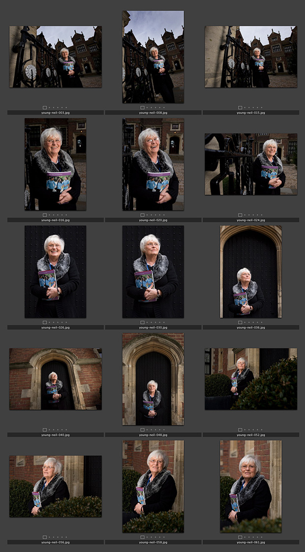 This is another contact sheet that doesn’t quite fit in with my previous postings. The lady in the portraits is a “Choice Adviser” whose job it is to work with children and their parents to help them choose which secondary schools are best for them and to help them make their applications to their chosen schools. Part of her job is to hold workshops and the pictures were taken outside the most beautiful of the buildings where she does those workshops.