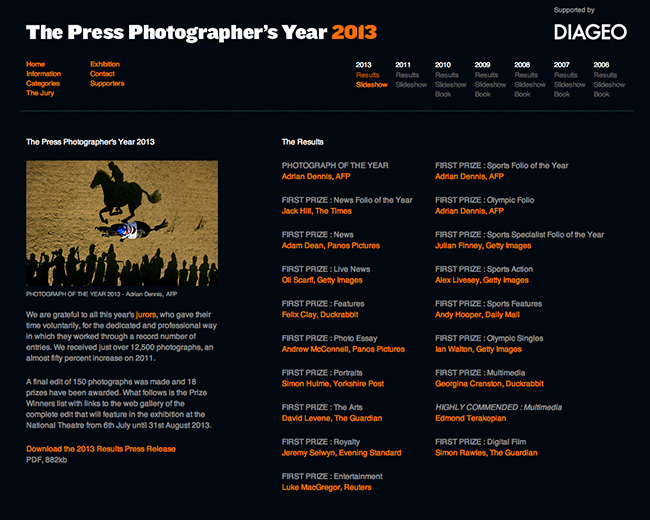 I always have a look at who has won various competitions and I’m always interested to see what the judges go for. Most competitions leave me a little cold but The Press Photographer’s Year is different. Well thought out categories, independently judged (I have to say that, I’ve been on the Jury twice myself) and backed by The BPPA I have always been part jealous and part proud of the winners. Jealous because I never seem to win anything and proud because I can call most of the winners my colleagues and friends