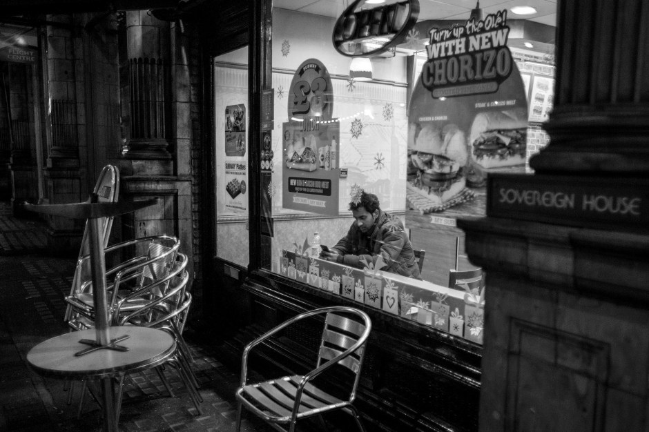 Shaftesbury Avenue & Covent Garden long after dark. Next → Sitting in the window seat at Subway on Shaftesbury Avenue Photo: Neil Turner
