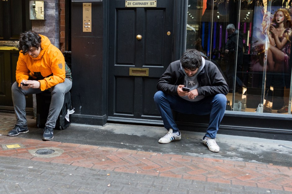 London on a cold and wet January Sunday afternoon. ← Previous Next → Texting in a London street. ©Neil Turner, January 2016