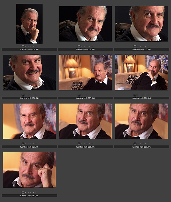 Carlos Fuentes portrait – the “contact sheet”