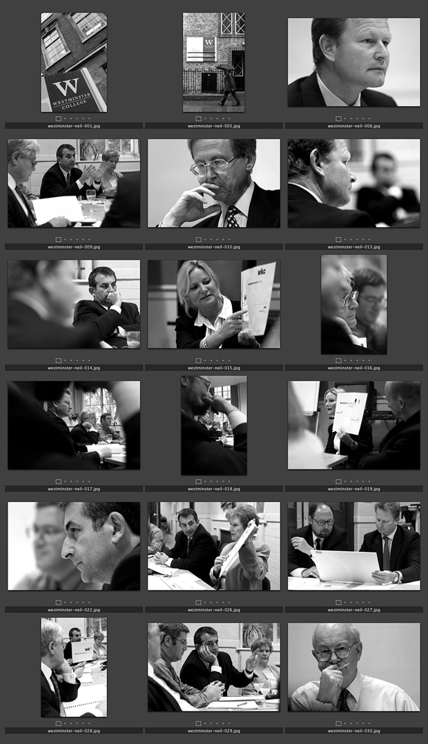 Until now all of the ‘contact sheets’ that I have blogged have been from portrait assignments. Whilst looking back through some old pictures that haven’t seen the light of day in many years I came across this set of images. I was commissioned to do a sort of ‘fly-on-the-wall’ coverage of a Board meeting of the combined Westminster and Kingsway College governors.